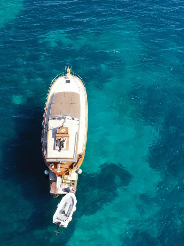 Χαλαρώστε στους άνετους χώρους, που είναι διακοσμημένοι με χρώματα εμπνευσμένα από το τοπίο της Πελοποννήσου. Είτε απολαμβάνετε τον ήλιο στο κατάστρωμα είτε βρίσκετε καταφύγιο στη σκιά, κάθε στιγμή είναι μια ευκαιρία να εκτιμήσετε την ομορφιά των ελληνικών θαλασσών. Ελάτε μαζί μας στη La Professora και ανακαλύψτε τους κρυμμένους θησαυρούς του Πόρου, οι οποίοι είναι προσβάσιμοι μόνο με σκάφος.